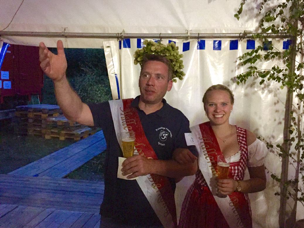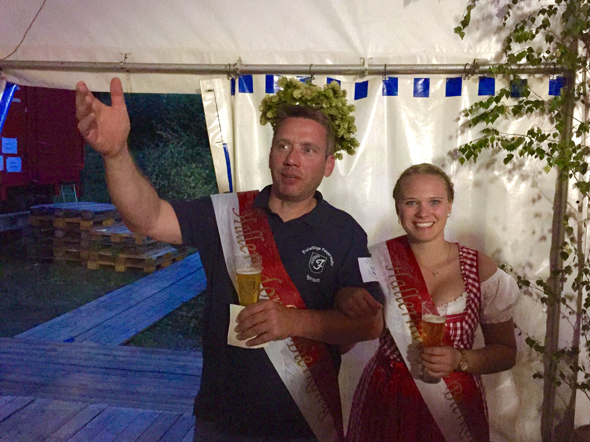 Fortan herrschen Laura I. und Jens I. über die 7 Hallerndorfer Brauereien. Der Gewinn der Hopfenkrone wurde natürlich standesgemäß gefeiert und selbstverständlich eine Einladung zum Gegenbesuch der Hallerndorfer Bierkönigin in Igstadt ausgesprochen.
