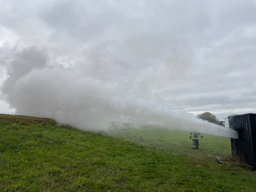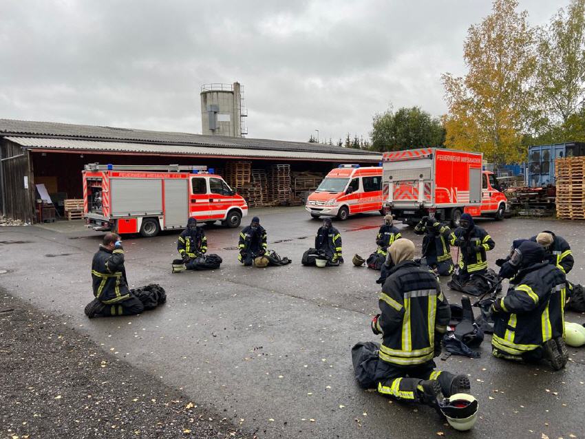 Dichter Rauch steigt aus den Fenstern, Flammen züngeln im Innern des Gebäudes und die Rauchwarnmelder Piepsen im unverkennbaren schrillen Ton in der Schreinerei der Altmünsterstraße in Igstadt. Die Anwohner versammeln sich und beobachten das Geschehen.
