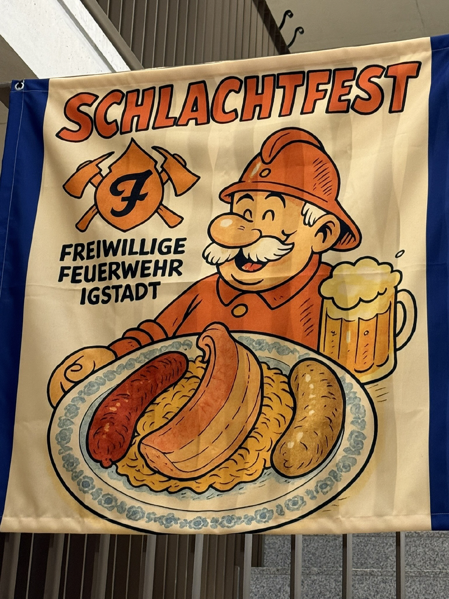 Die Freiwillige Feuerwehr Igstadt e.V. veranstaltete am vergangenen Wochenende ihr erstes Schlachtfest in der Fahrzeughalle. Zahlreiche Besucherinnen und Besucher genossen Hausmacher Spezialitäten, Wellfleisch und kühle Getränke in geselliger Atmosphäre.